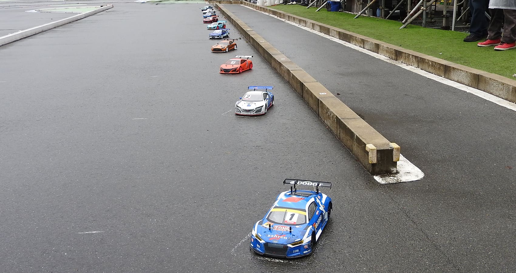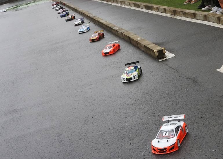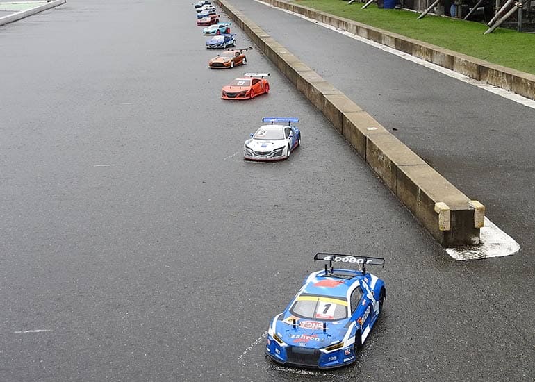 日曜日は「FAZERウルトラスケール ジュニア&レディース」「FAZERウルトラスケール スポーツ」「FAZERウルトラスケール エキスパート」「V-ONE TEAM」「FANTOM/PLAZMA」クラスを開催。早朝からの雨が止まず、スタート時間を遅らせ、ウエットレースを宣言しての開催となったが、天候は徐々に回復して無事に全レースを開催することが出来ました。