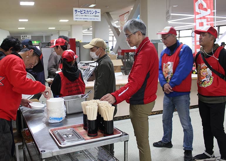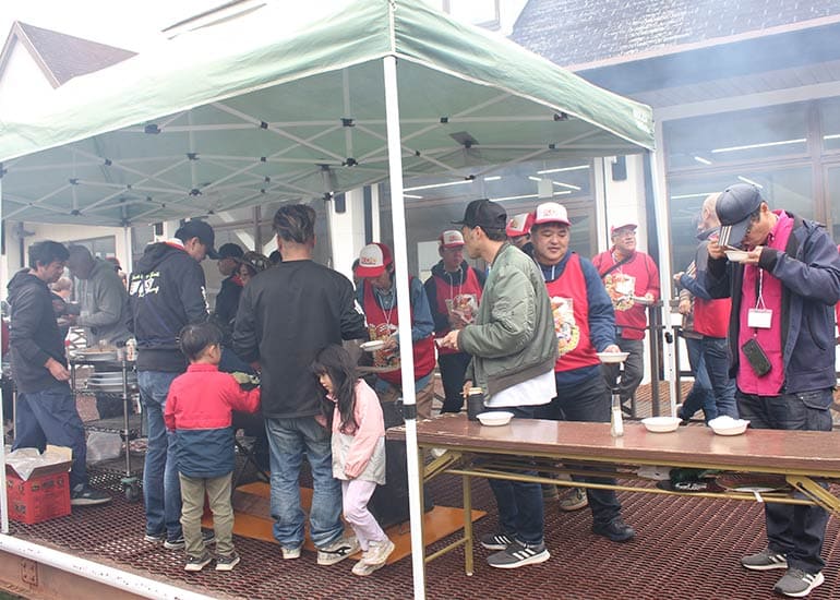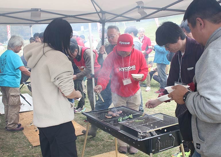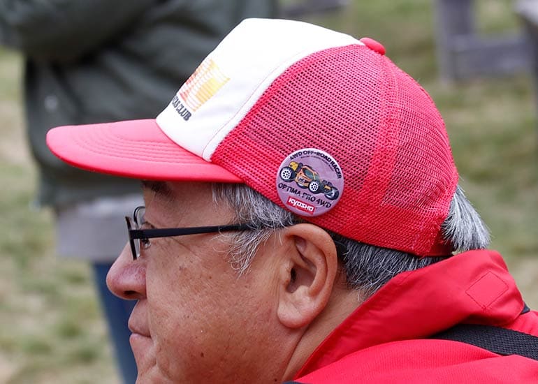 今年も長野県の聖地「しらかば2in1 スキー場ゲレンデ」の特設会場にて「第8回 京商ビンテージミート」を盛大に開催。当日は小雨&濃霧、そして時おり差し込む晴れ間と、山の上らしい劇的な空模様。イベント規模は年々拡大しており、今回は約100名のエントリーを数えて大きな賑わいをみせました。エントリーした皆様には参加賞として缶バッジが配られ、早速バッグや帽子につける方もチラホラと見受けられた。