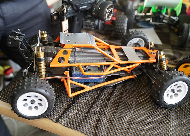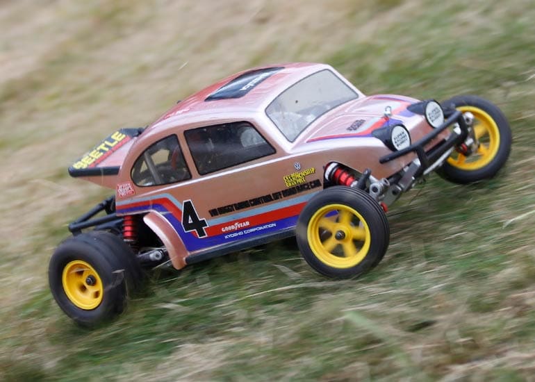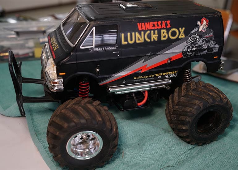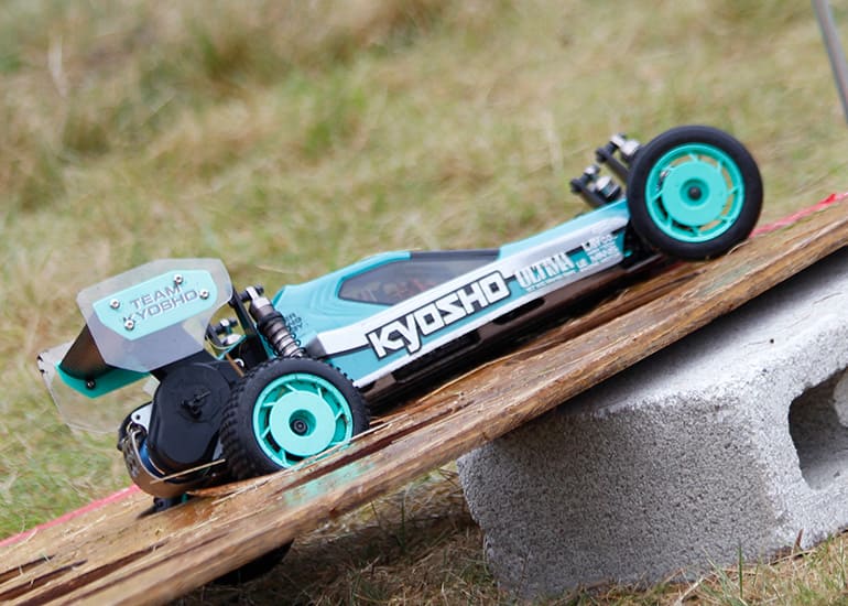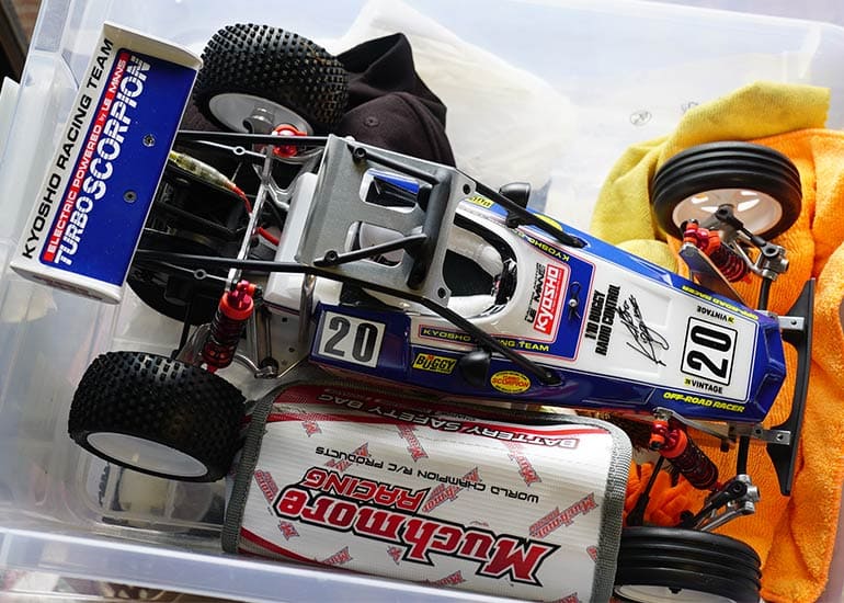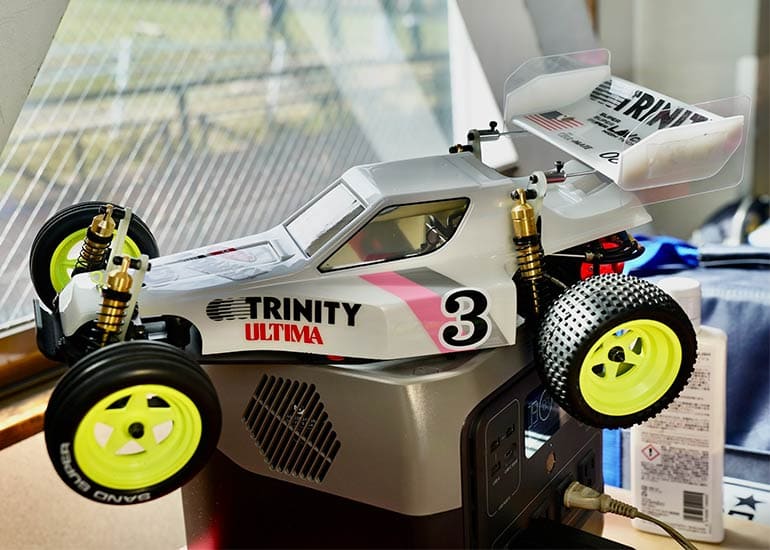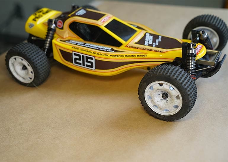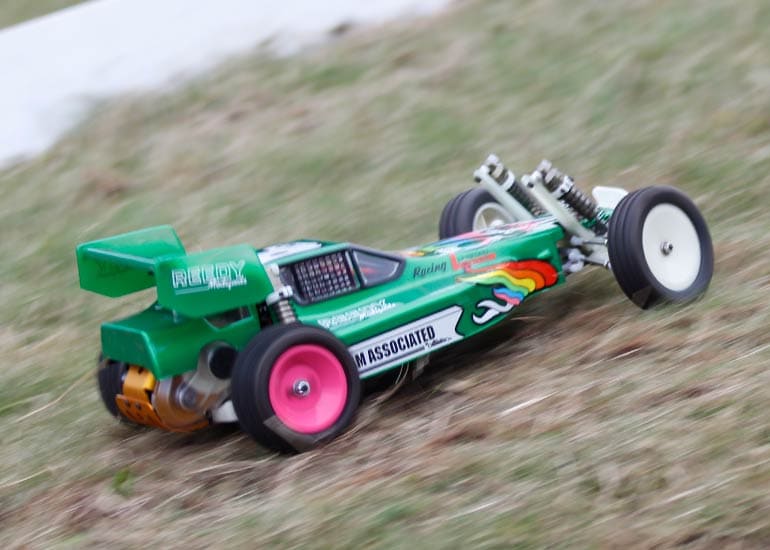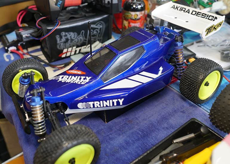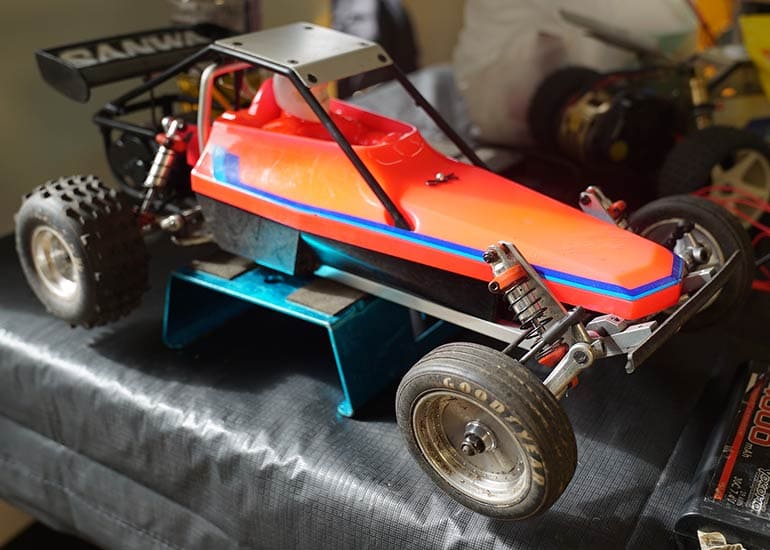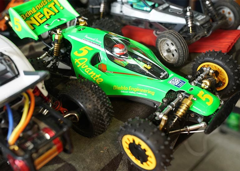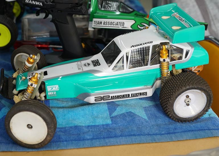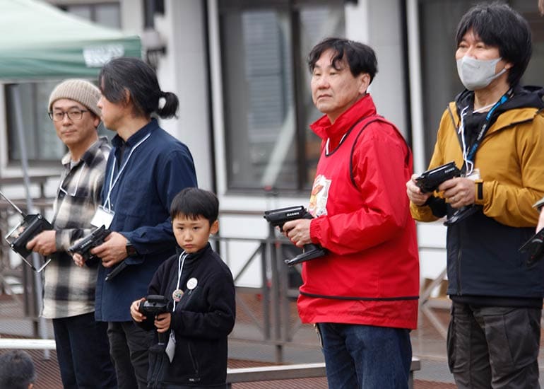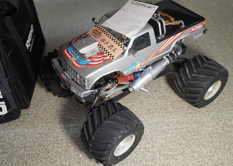 当時の熱気を伝えるトークショーには豪華ゲストが集結し、ビンテージシリーズ生みの親である粉川 章氏が今年も参加。そして、伝説の京商ワークスドライバー高麗 淳一氏と、現役の京商社員ドライバーの松本 裕之氏も会場を盛り上げます。さらに今回は特別ゲストとして、京商開発チームでEPレース部門を担当し、高麗さんの発掘にも大きな貢献をした、現在はサガミマイクロ代表取締役社長の中西 和弘(通称:ドクター中西)氏にもご参加いただきました。今回メインイベントの一つである熱気溢れるトークセッションでは、大型スクリーンに当時の貴重な記事や広告、そして秘蔵写真の数々を投影。豪華ゲスト4名が語る思い出話は、参加者にとっても何者にも代えがたいノスタルジーを感じさせてくれました。ただ単なる回顧録に留まらず、今まで表に出ることがなかった裏話も飛び出し、会場からは驚きの声も上がっていました。