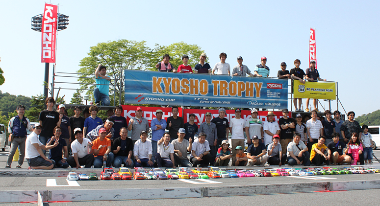 去る5月31日(土)と6月1日(日)にわたり、KYOSHOのお膝元神奈川県厚木市「荻野運動公園特設会場」にて、「京商トロフィー関東Aブロック大会」が開催された。大会初日の5月31日(土)は個人戦、EPツーリング(16名)・SPADA09L(11名)・EPミニ(27名)・DRX VE(9名)の計4クラスに昨年を上回るエントラントが集結し5月末としては珍しく30℃を超える炎天下のもと各クラスとも熱戦が展開された。