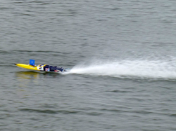 今回の水面はトンネル船体に好条件のベタ水面。しかし、流れがあるので思ったラインより切れ込んでしまう船体をうまくコントロールできるかどうかがカギとなった様です。リタイヤ艇が出る中で安定感のある走りでフルマークまであと一歩という高得点を出した鈴木健矢選手が優勝。