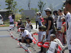 イベントのメインとなるKYOSHO CUPの開催のほかにも、“くるまライフ、コミュニティーパーク”というネオパーサ清水のコンセプトに合わせた各種催し物を用意。NEXCO中日本管内のサービスエリアを中心に配布されているフリーペーパー『KURUMAG.』とのコラボレーションブースをレース会場の一角に設置してのミニッツレーサー展示&体験走行をはじめ、京商が取り扱うスロットカー『カレラ』の体験走行や京商製R/Cモデル&ミニカーの新製品展示などを実施。ボディの仕上りのよさに感嘆の声をあげる人、R/Cカーを初めて操縦する人、久しぶりにR/Cカーを見て懐かしむ人などその反応は十人十色だったが、京商では“R/Cカーの楽しさ”や“クルマの魅力”をより多くの人に伝えるための各種催し物を今後も積極的に展開していきます。