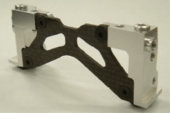 | 2009年9月発売 / FMW43 / 5040円(税込) アルミ削り出しの両サイドのポスト部分をカーボンセンタープレートでジョイントさせたハイブリッドタイプのセンターバルクヘッド。重量増加を最小限(ノーマル比11g増)にとどめながら高い剛性を確保してあります。装着することでクイックなレスポンスを得られます。またカーボンセンタープレートを外すことでロール剛性を弱くすることもできますのでコースに合わせてセッティングしてください。 |