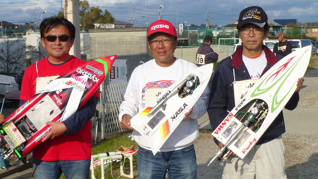浜崎選手は3番手を走航、このままいけば2位入賞と思った最終ラップの最終コーナー、何と浜崎選手のFMRがストップ?走航不能で無念のリタイア!止まった原因はプロペラナットがずれてしまったため。