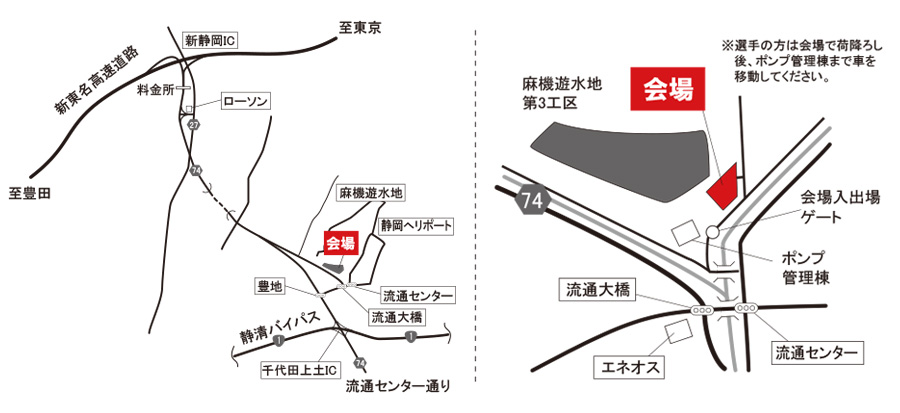 | 全クラス | 当日発表 (1周 約100Mのコースを5周するレースを3~4ラウンド予定。※EPクラスは左ターンも有り。)※出走艇には、JRM指定のカラー表示板を船体左右側面から見える位置に取付けること。(カラー表示板は当日販売 ¥500) |