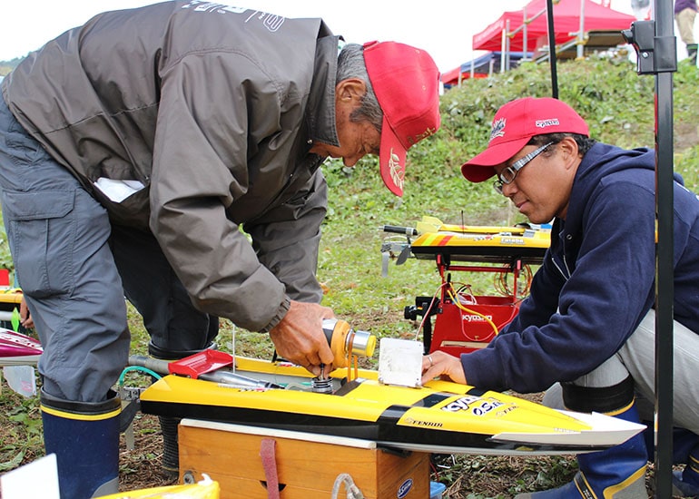 会場は普段からR/Cボートを走らせにくる方や、フィッシング、バードウォッチングに遊びに来る方も多く、周囲を木々に囲まれた気持ち安らぐスポットだ。
