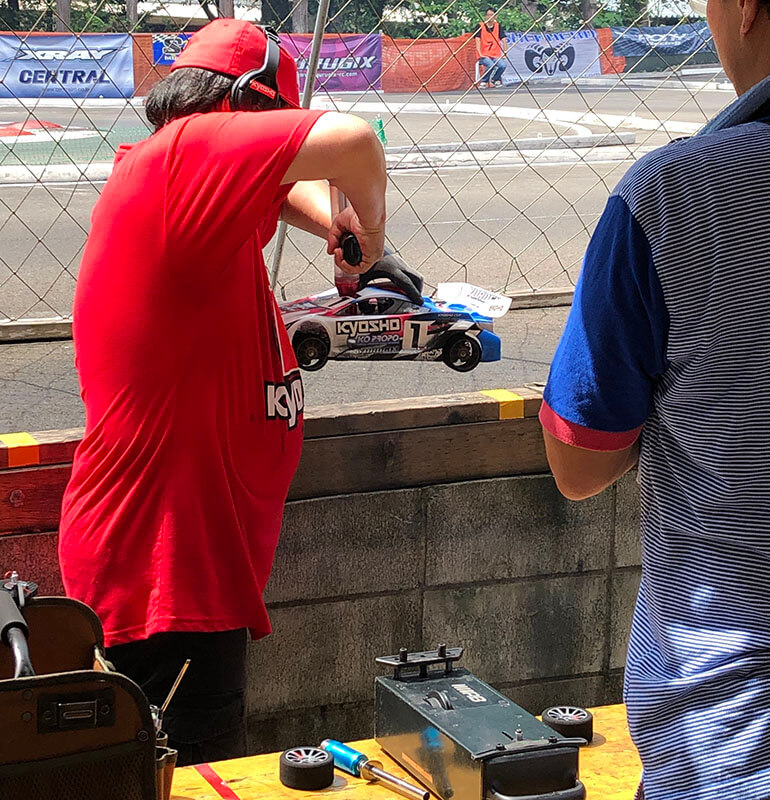 迎えた決勝日、IFMARクラスグランドファイナルでは3番グリッドからスタートした齋藤選手でしたが2度のエンストを喫してしまい6位でフィニッシュ、9番グリッドからスタートした川上選手は粘りの走りで5位入賞、8番グリッドからスタートした丸山選手は7位でフィニッシュ、いずれも40分の長丁場を見事完走。