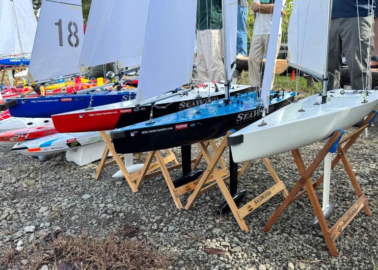 2025年9月21日(日) 静岡県御殿場市の「東山湖フィッシングエリア」にて、第44回 KYOSHOマリンカップが開催。夏の暑さが和らぎ、過ごしやすい気候の中で行われた今大会は、水面を彩る熱気に満ちた一日となりました。R/Cボートとヨットを純粋に楽しむ人、誰よりも速くトップを目指したい人。真剣な眼差しで水面と向き合う、参加者たちの姿がとても印象的でした。全4ラウンドに渡って繰り広げられたレース終了後には、参加者全員を対象とした抽選会も実施。皆さんが笑顔で語り合ったり、来シーズンへの期待を膨らませたりと、思い思いに1日を満喫されていました。