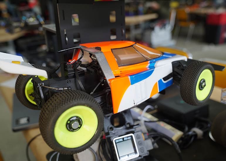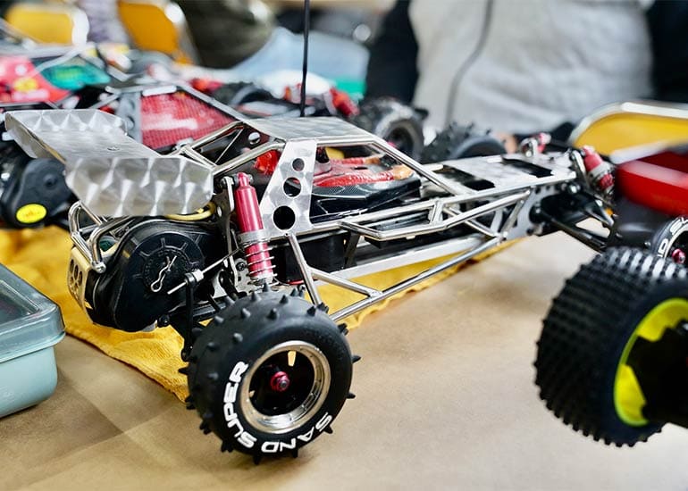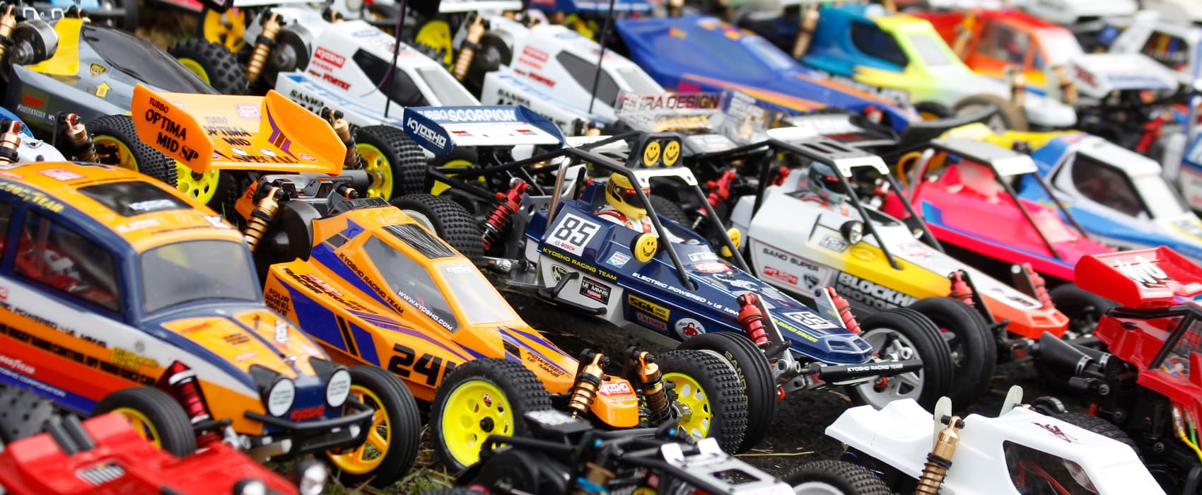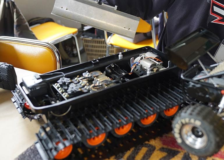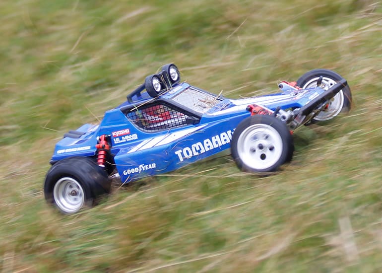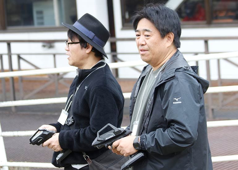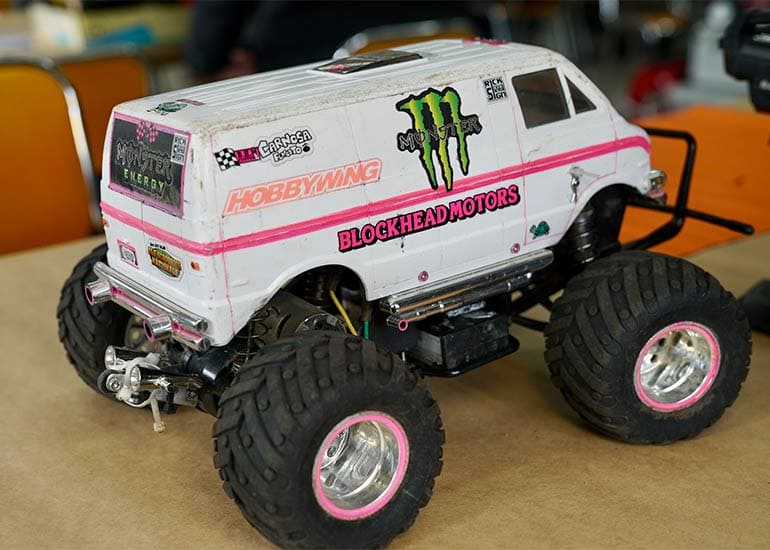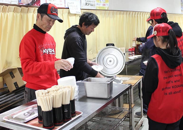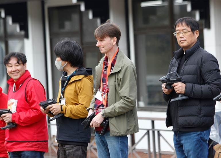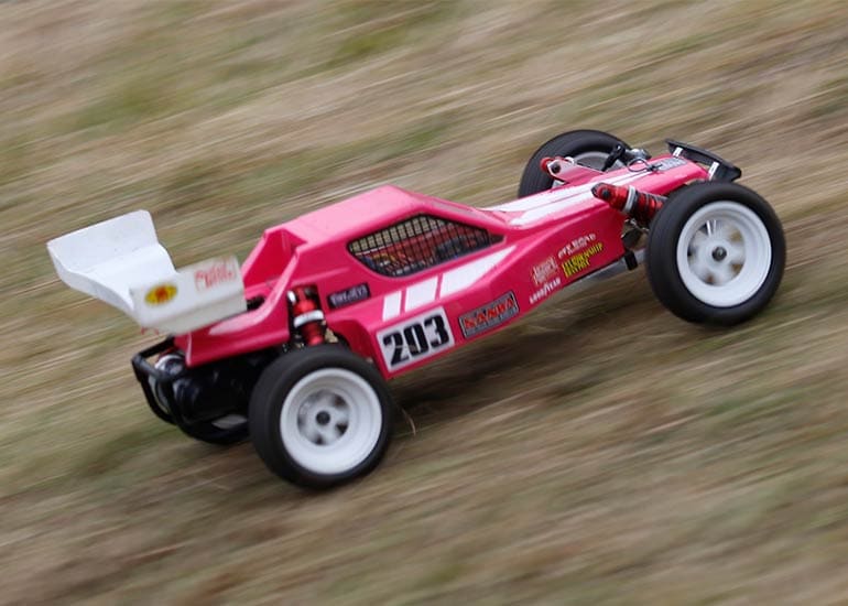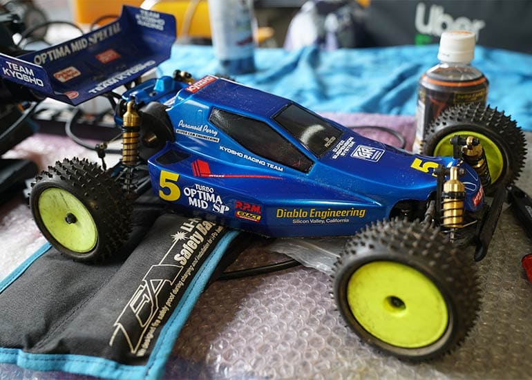 当時の熱気を伝えるトークショーには豪華ゲストが集結し、ビンテージシリーズ生みの親である粉川 章氏が今年も参加。そして、伝説の京商ワークスドライバー高麗 淳一氏と、現役の京商社員ドライバーの松本 裕之氏も会場を盛り上げます。さらに今回は特別ゲストとして、京商開発チームでEPレース部門を担当し、高麗さんの発掘にも大きな貢献をした、現在はサガミマイクロ代表取締役社長の中西 和弘(通称:ドクター中西)氏にもご参加いただきました。今回メインイベントの一つである熱気溢れるトークセッションでは、大型スクリーンに当時の貴重な記事や広告、そして秘蔵写真の数々を投影。豪華ゲスト4名が語る思い出話は、参加者にとっても何者にも代えがたいノスタルジーを感じさせてくれました。ただ単なる回顧録に留まらず、今まで表に出ることがなかった裏話も飛び出し、会場からは驚きの声も上がっていました。