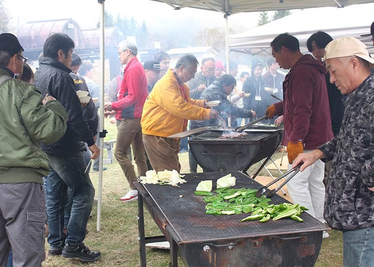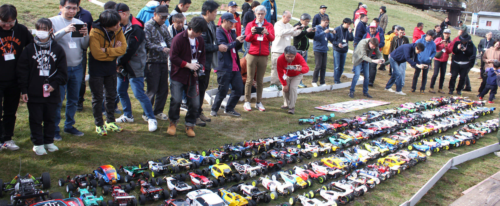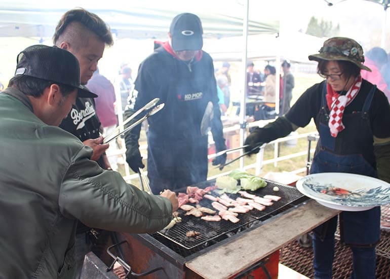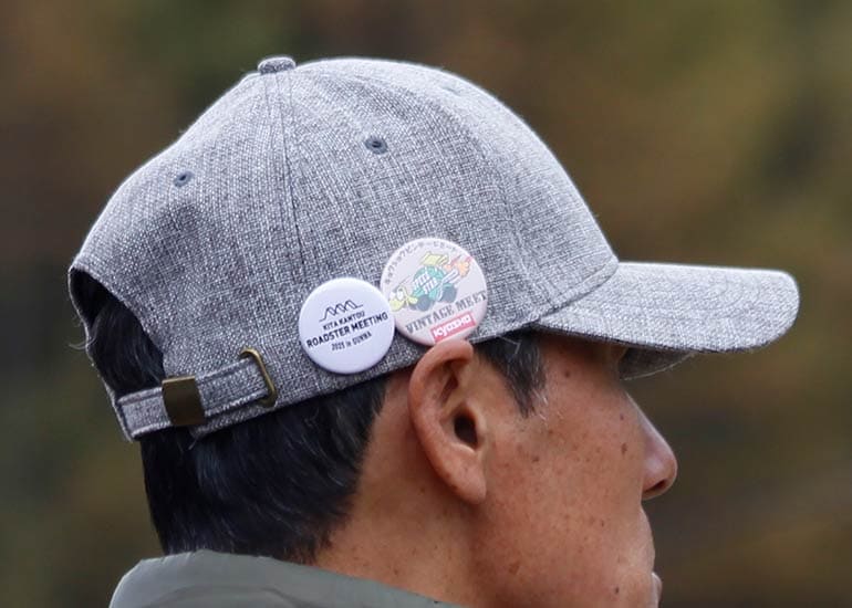 今年も長野県の聖地「しらかば2in1 スキー場ゲレンデ」の特設会場にて「第8回 京商ビンテージミート」を盛大に開催。当日は小雨&濃霧、そして時おり差し込む晴れ間と、山の上らしい劇的な空模様。イベント規模は年々拡大しており、今回は約100名のエントリーを数えて大きな賑わいをみせました。エントリーした皆様には参加賞として缶バッジが配られ、早速バッグや帽子につける方もチラホラと見受けられた。